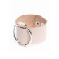 Тиррени – стильный женский браслет ручной работы из натуральной кожи. Браслет декорирован металлическим кольцом. Кожа толстая, но при это достаточно мягкая и пластичная – руке в таком браслете будет очень комфортно. Ширина браслета 3,5 см, застегивается на функциональные кнопки.