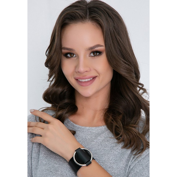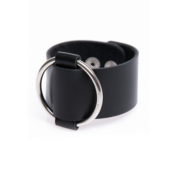 Тиррени – стильный женский браслет ручной работы из натуральной кожи. Браслет декорирован металлическим кольцом. Кожа толстая, но при это достаточно мягкая и пластичная – руке в таком браслете будет очень комфортно. Ширина браслета 3,5 см, застегивается на функциональные кнопки.