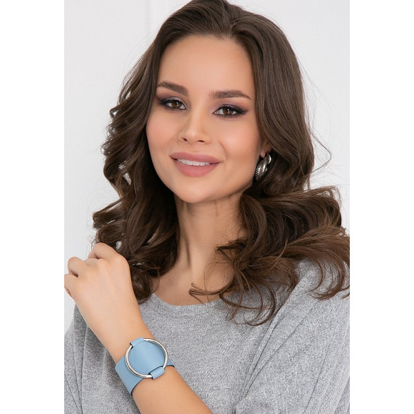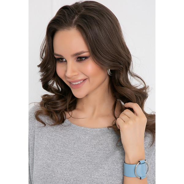 Тиррени – стильный женский браслет ручной работы из натуральной кожи. Браслет декорирован металлическим кольцом. Кожа толстая, но при это достаточно мягкая и пластичная – руке в таком браслете будет очень комфортно. Ширина браслета 3,5 см, застегивается на функциональные кнопки.