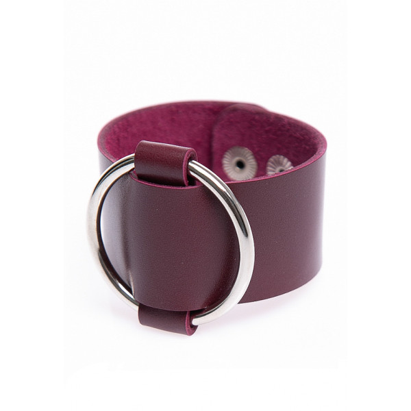 Тиррени – стильный женский браслет ручной работы из натуральной кожи. Браслет декорирован металлическим кольцом. Кожа толстая, но при это достаточно мягкая и пластичная – руке в таком браслете будет очень комфортно. Ширина браслета 3,5 см, застегивается на функциональные кнопки.