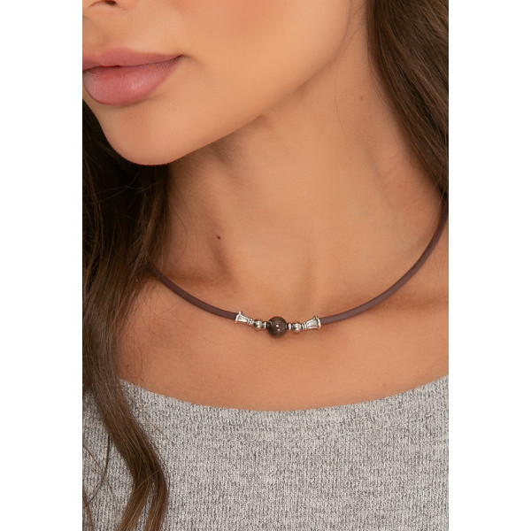 Мелфи - колье, мини-гольф (чокер) с бусиной чёрного перламутра размером 9 мм на каучуковом шнуре коричневого цвета. Можно использовать в качестве браслета. Будьте неподражаемой вместе с "5trend"!