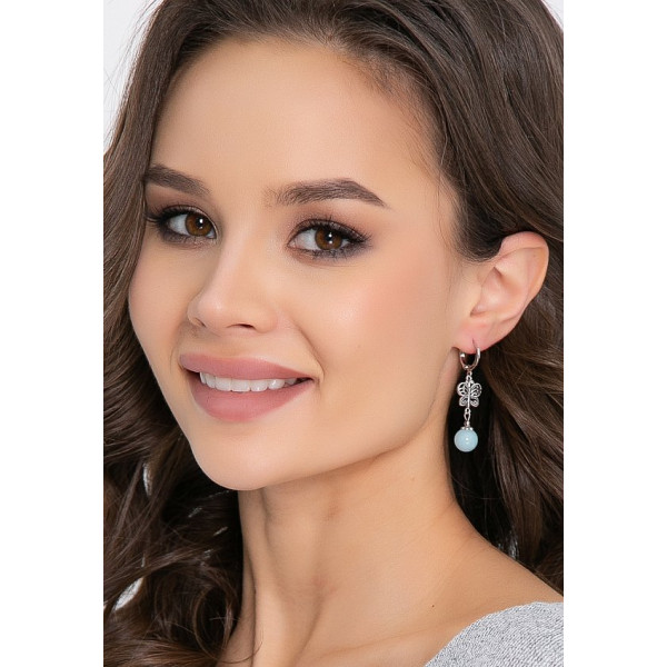 Варси - стильные серьги "бабочка" со светящимися бусинами размером 10 мм. Фурнитура цвета "серебро". Будьте яркой и неповторимой вместе с "5trend"!