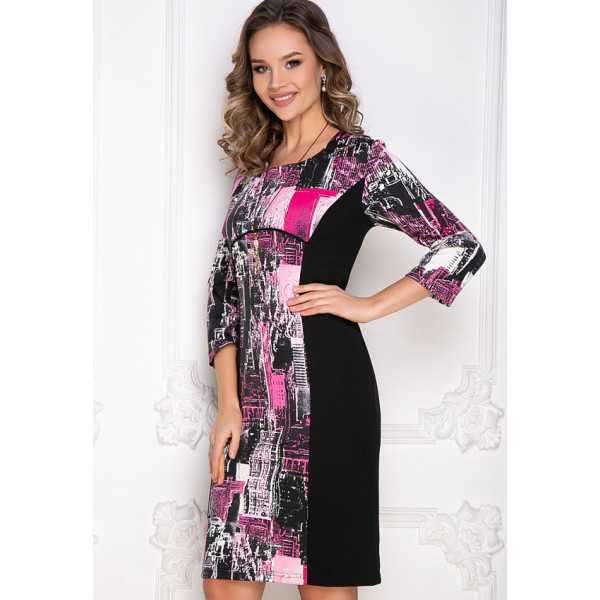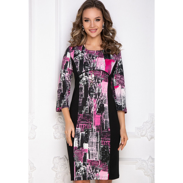 Алькамо - платье полуприлегающего силуэта из мягкого трикотажа с принтом и однотонными вставками. Вырез горловины классический овальный. Рукава 3/4, втачные. По спинке и переду - рельефы. Комбинация тканей эффектно подчеркивает фигуру. Быть яркой легко в любом сезоне, если вы делаете выбор вместе с "5trend"!