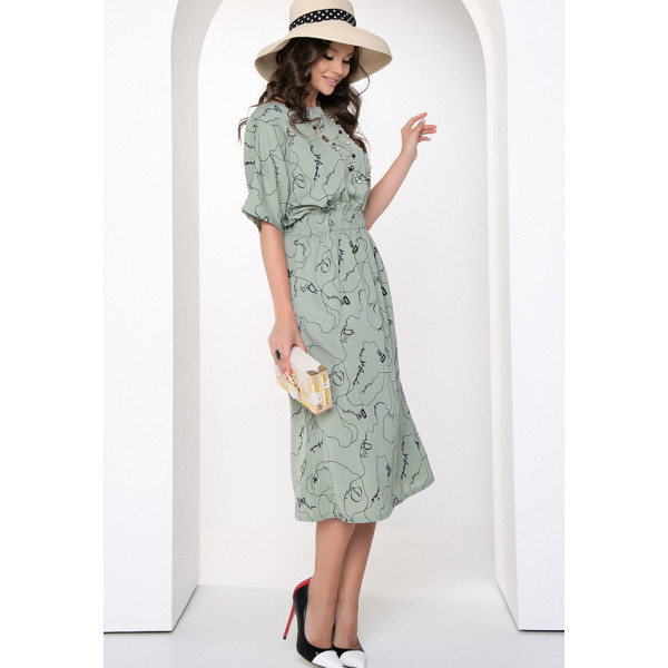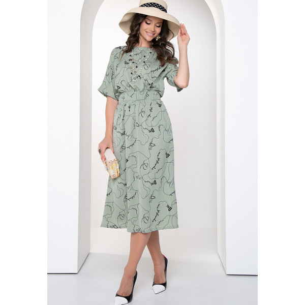 Анзалино – платье свободного силуэта из плательной ткани с принтом. Вырез горловины классический овальный. Пояс на резинке. Рукава цельнокроеные, короткие. Легкая летящая юбка придаст образу легкость. Удивляйте и радуйте окружающих вместе с “5trend”! Рост модели – 172 см Длина изделия: 46 размер — 120 см 48 размер — 120 см 50 размер — 121 см 52 размер — 121 см 54 размер — 121 см