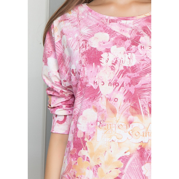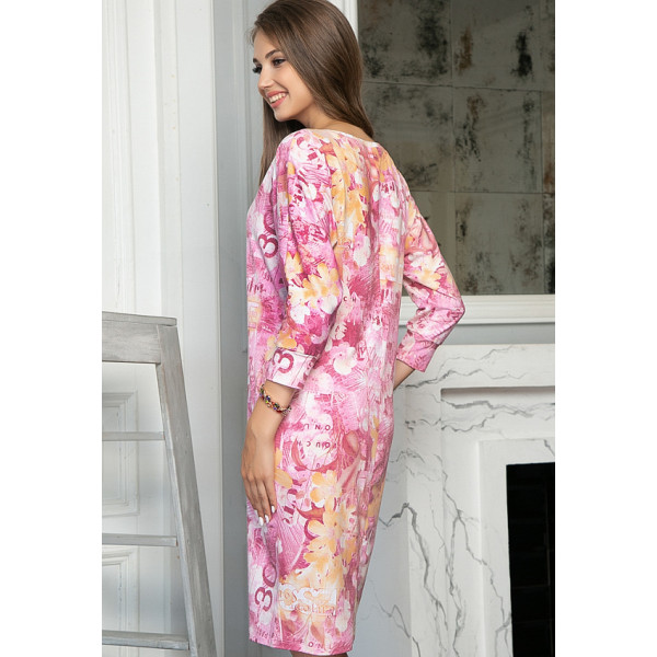 Платье Азалия - оригинальное легкое платье в розовом цвете с округлым воротом, открывающим зону плеч. Свободный крой, рукава "летучая мышь" размера 7/8, . Будь неотразимой с "5trend!".