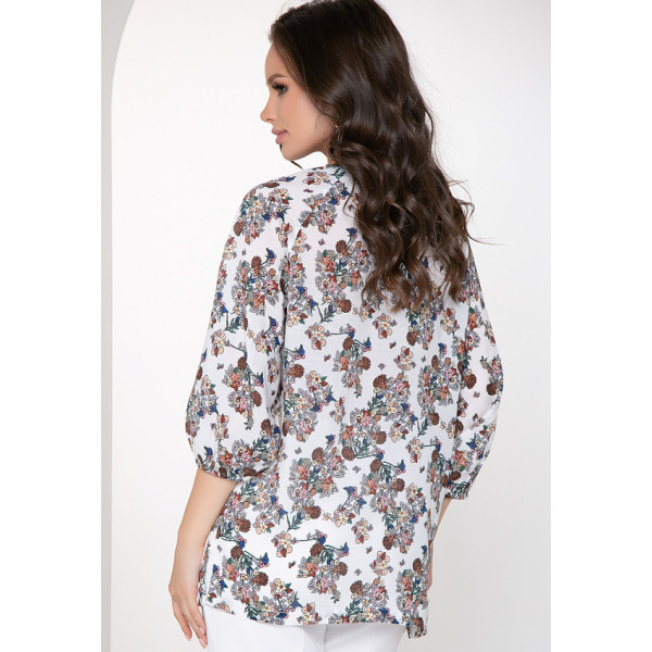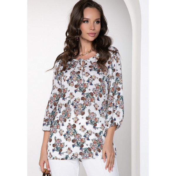 Луина – блузка свободного силуэта из легкой хлопковой ткани с принтом. Вырез горловины на сборке и на завязке. Рукава 3/4, реглан, внизу оторочены резинками. По бокам на блузке разрезы. Блуза отлично сочетается с различными элементами гардероба. Будьте яркой и неповторимой вместе с “5trend”!