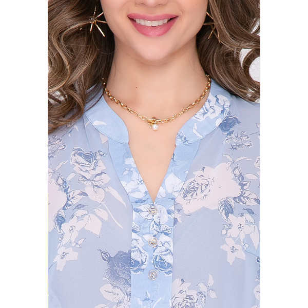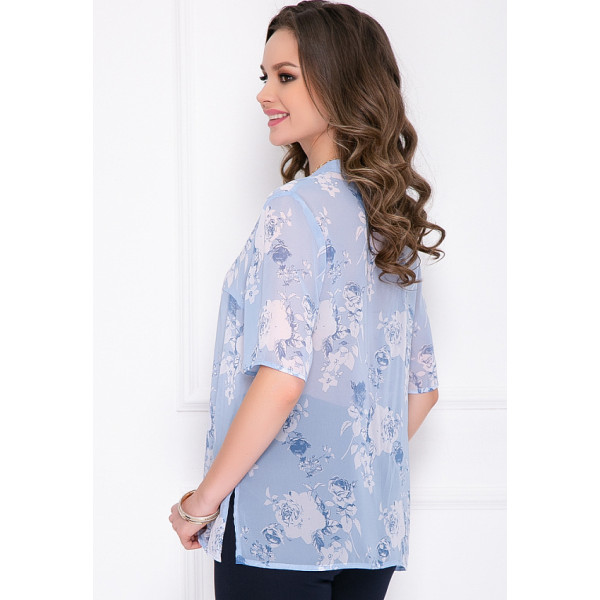 Мессино - легкая блуза свободного кроя блузка из шифона с принтом. V-образный вырез с воротничком-стойкой переходит в декоративную планку с пуговицами. Рукава втачные, короткие. По бокам - декоративные разрезы. Блуза отлично сочетается с различными элементами гардероба: брюки, джинсы, бриджи, юбка. Удивляйте окружающих и чувствуйте себя лучше вместе с “5trend”!