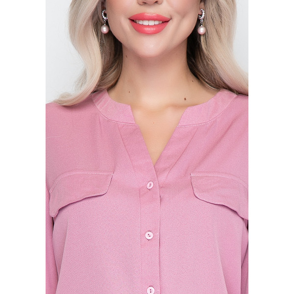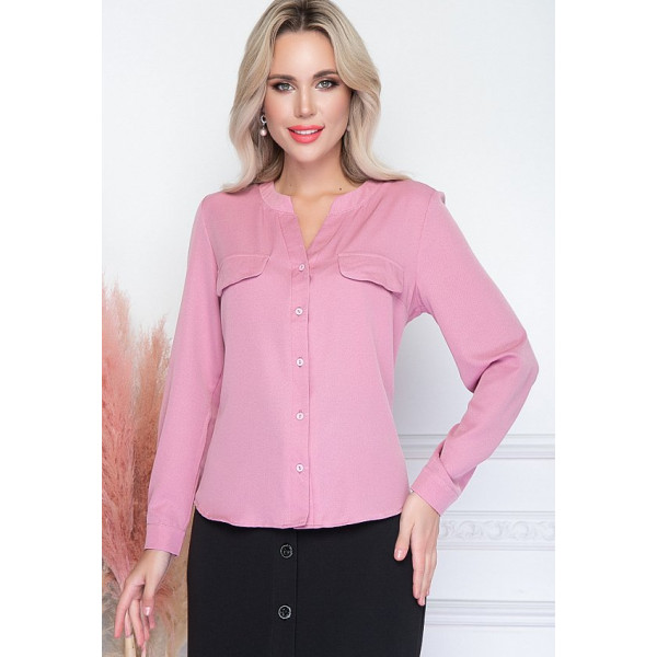 Семпре - элегантная блузка из блузочной ткани. Спереди - планка с пуговицами. На груди - имитация карманов с клапанами. Вырез горловины комбинированный: овальный и V-образный. Рукава втачные, длинные. Быть элегантной легко вместе с "5trend"!