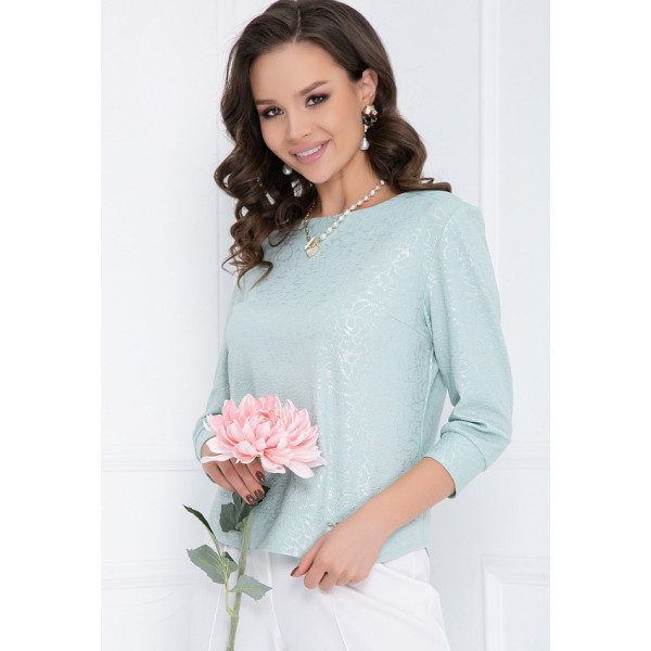 Бауни – блузка свободного кроя из однотонного трикотажа. Горловина круглая, обработана обточкой. Рукава втачные, 3/4, оторочены манжетами. Снизу – декоративное украшение. Блуза отлично сочетается с различными элементами гардероба. Будьте неподражаемой вместе с “5trend”!