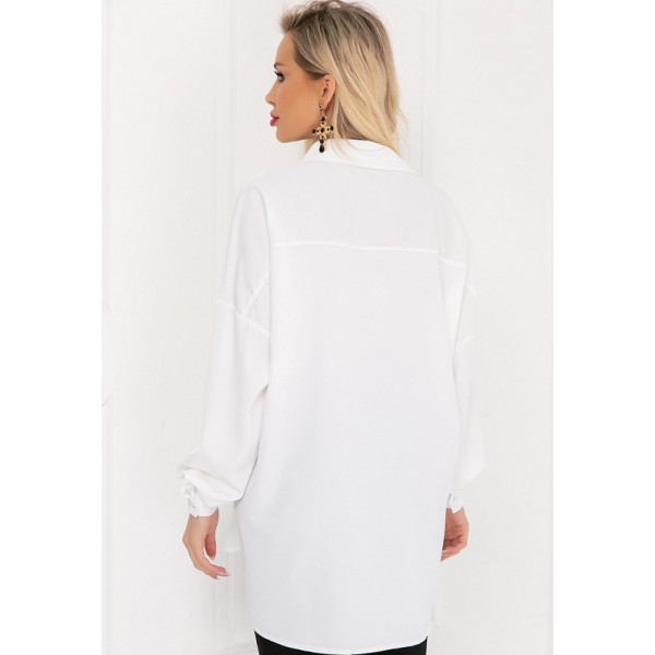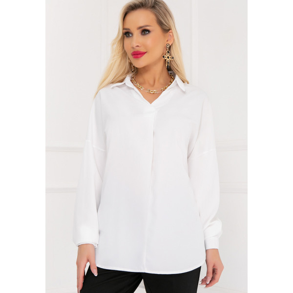 Гаццола - нарядная блузка оверсайз из однотонной блузочной ткани. Воротник - стойка. Рукава длинные, втачные, декорированы манжетами. Спереди - декоративный защип. Будьте неподражаемы и нарядны вместе с "5trend"!