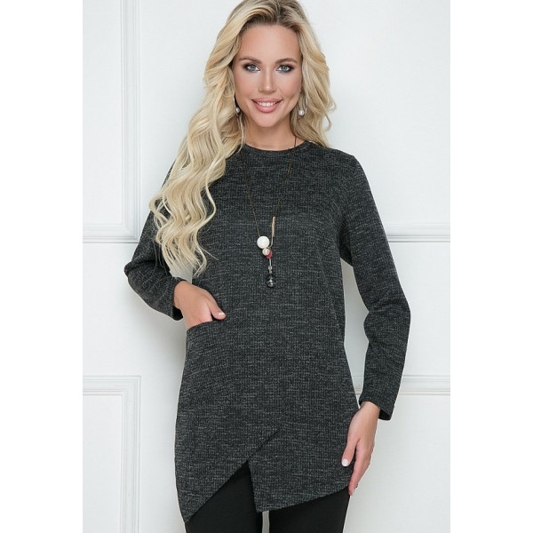 Ронки – туника полуприлегающего силуэта из трикотажа. Вырез горловины классический овальный. Рукава длинные, втачные. Спереди функциональный накладной карман. По низу – запах, придающий тунике оригинальность и нарядность. Такая модель отлично сочетается с различными элементами гардероба: брюки, юбки, джинсы. Будьте яркой и практичной вместе с “5trend”!