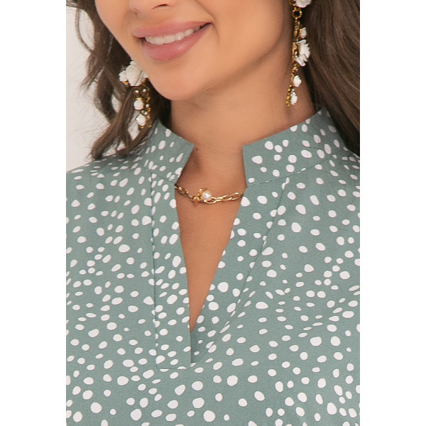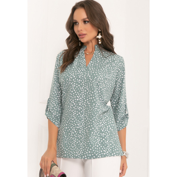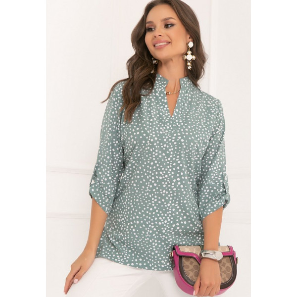 Сальвия - блузка полуприлегающего силуэта из блузочной ткани с принтом. Вырез горловины V-образный, декорирован воротником стойкой. Рукава 3/4, втачные, декорированы патами. Блуза отлично сочетается с различными элементами гардероба. Будьте стильной и практичной вместе с “5trend”!