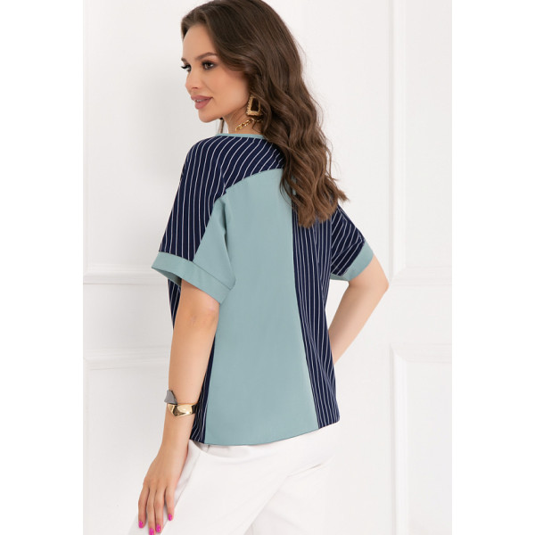 Синио - блузка свободного силуэта из бенгалина двух оттенков. Вырез горловины классический овальный. Рукава цельнокройные, со спущенным плечом. Впереди и сзади кокетки. Будьте яркой и оригинальной вместе с "5trend"!