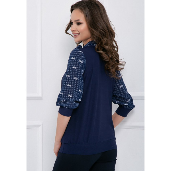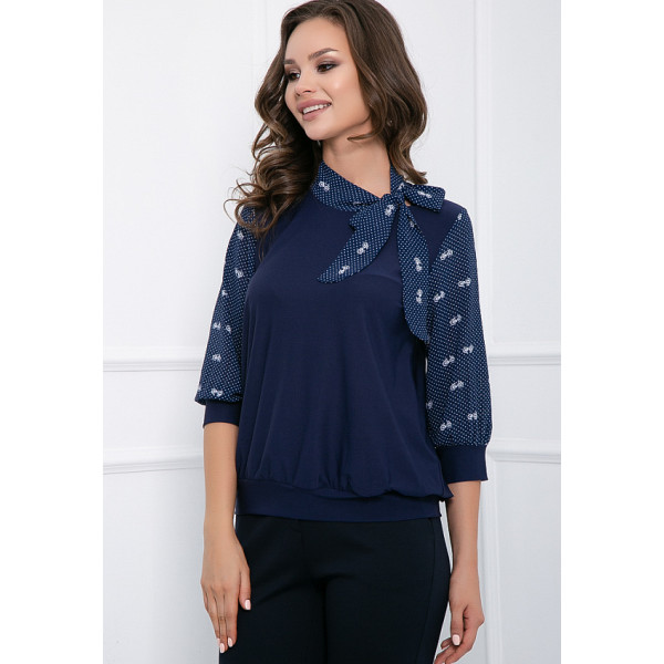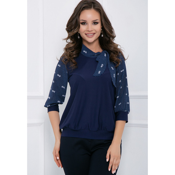 Тильда - трикотажный джемпер свободного силуэта. Вырез горловины округлый, украшен шифоновым бантом. Рукава 3/4, втачные из шифона с трикотажным манжетом. Низ на "ножке". Джемпер сочетается с различными элементами гардероба: брюки, джинсы, юбка. Удивляйте и радуйте окружающих вместе с "5trend"!