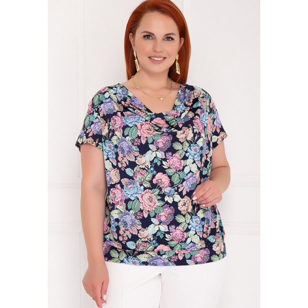 Тинзеро - легкая летняя блузка свободного силуэта из блузочной ткани с ярким цветочным принтом. Вырез горловины классический, оторочен воротником-хомутом "качели". Рукав классический, втачной, короткий. Низ блузки - на ножке. Такая блузка отлично подойдет к классическим юбкам или брюкам. Будьте привлекательной вместе с “5trend”!