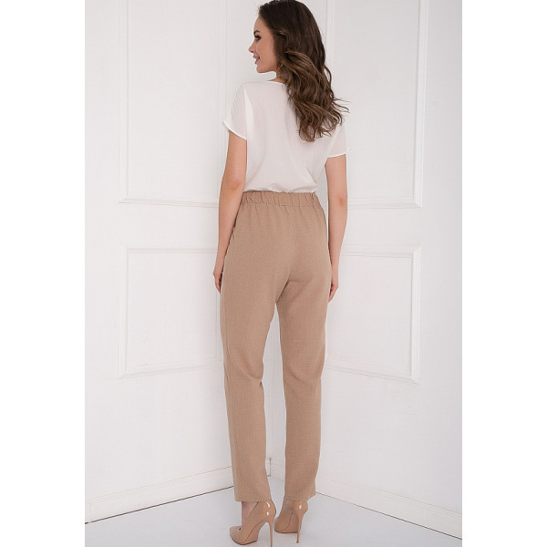 Гуереро – зауженные к низу брюки из габардина нежного бежевого оттенка. Пояс-резинка великолепно садиться по фигуре. Спереди – имитация гульфика. По бокам удобные функциональные карманы. Брюки отлично сочетаются с блузками, свитшотами, кардиганами и туниками. Будьте стильной вместе с “5trend”! Рост модели: 172 см Длина изделия: 50 размер — 106,5 см 52 размер — 106,5 см 54 размер — 106,5 см 56 размер — 106,5 см 58 размер — 106,5 см