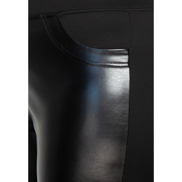 Сельмио - зауженные к низу брюки из трикотажа и эко-кожи. Пояс-резинка великолепно садиться по фигуре. Перед состоит из кожи, а сзади тянущийся трикотаж По бокам имитация карманов. Брюки отлично сочетаются с блузками, свитшотами, кардиганами и туниками. Будьте стильной вместе с "5trend"!