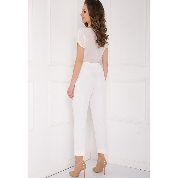 Вальсори - элегантные легкие брюки из костюмной ткани. Пояс-резинка великолепно обеспечивает удобную посадку. Внизу на штанинах декоративные разрезы. Брюки отлично сочетаются с различными элементами гардероба: блузки, топы, жакеты. Будьте неотразимой вместе с "5trend"!