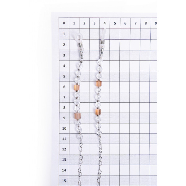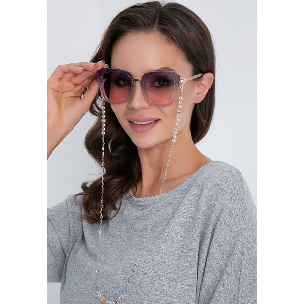 Фассета - стильная цепочка для очков в виде сердечек. Родированная (гипоаллергенна, не темнеет), с граненными стеклянными бусинами. Цепочку можно также использовать в качестве колье или браслета. Будьте яркой и практичной вместе с "5trend"!