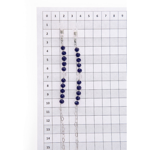 Сатурния - цепочка для очков - ручная работа. Бусины-"сердечки" с горным хрусталем и синими стеклянными бусинами.