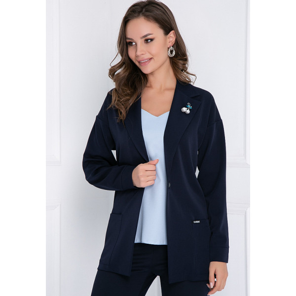 Элания – жакет прямого кроя из костюмной ткани. Вырез горловины V-образный, ворот классический с лацканами. Рукав – длинный с манжетами. Благодаря незатейливому крою жакет отлично подойдет практически на любую фигуру, и станет отличным дополнением к вашему образу. Быть деловой, стильной и привлекательной – легко вместе с “5trend”!