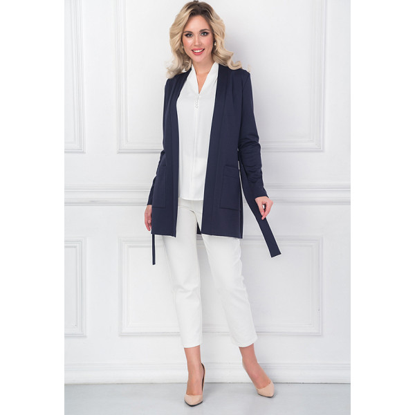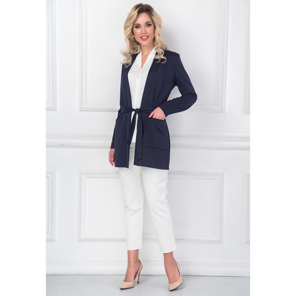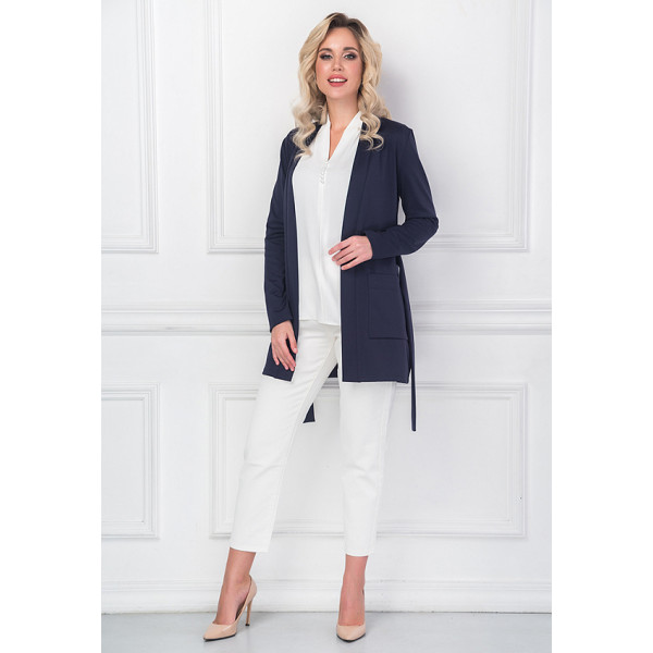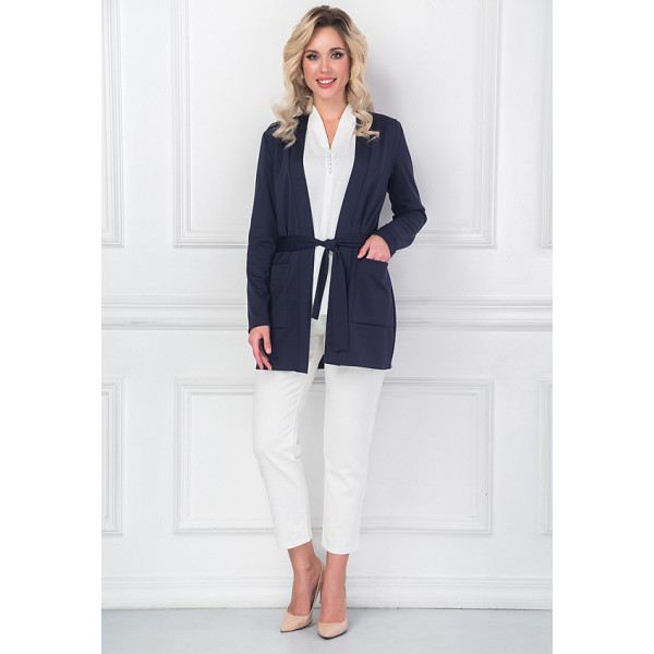 "Скиньяно" - элегантный трикотажный жакет насыщенного синего оттенка. Рукав – длинный. Жакет декорирован накладными карманами. В боковые швы вшит функциональный пояс. Благодаря незатейливому крою жакет отлично подойдет практически на любую фигуру, и станет отличным дополнением к вашему образу. Быть деловой, стильной и привлекательной – легко вместе с “5trend”!