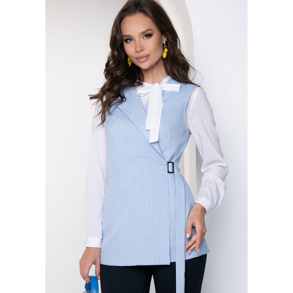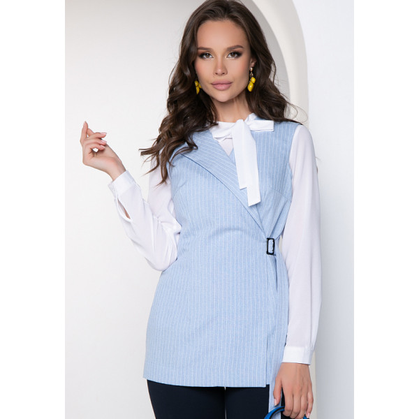 Солнета - жилет полуприлегающего силуэта с запахом, изготовлен из плательной ткани. Жилет хорошо сочетается как с блузами различного типа, так и с водолазкой. По линии талии – функциональный пояс с пряжкой. Вырез горловины V-образный. Будьте яркой и практичной вместе с "5trend"!