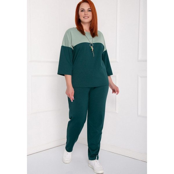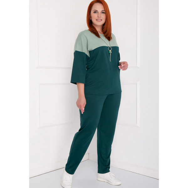 Арселия – женский трикотажный костюм-двойка. Классические брюки на резинке с карманами, заужены к низу. Джемпер комбинированный, свободного силуэта. Горловина округлая – “лодочка”, линия рукава спущена, длина рукава – 3/4. Чувствуйте себя комфортно и привлекательно в любой обстановке вместе с “5trend”! Рост модели – 172 см Длина изделия (джемпер): 44 размер — 63 см 46 размер — 63 см 48 размер — 64 см 50 размер — 64 см 52 размер — 65 см 54 размер — 65 см 56 размер — 65 см Длина изделия (брюки): 44 размер — 98 см 46 размер — 98 см 48 размер — 99 см 50 размер — 99 см 52 размер — 99 см 54 размер — 99 см 56 размер — 99 см