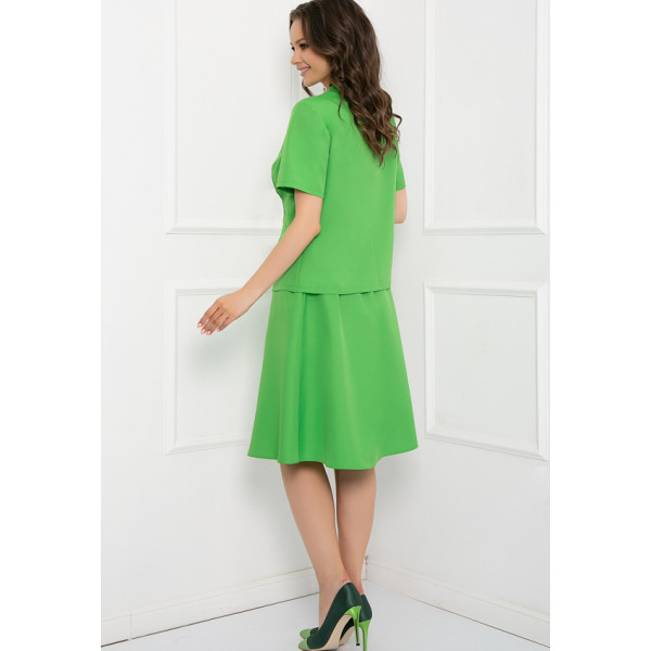 Джинези - костюм полуприлегающего силуэта из однотонной габардиновой ткани. Жакет полуприлегающего силуэта с фигурным бочком, рукав короткий. Застежка на одну пуговицу. Юбка-колокол с боковыми карманами, пояс на резинке. Будьте яркой и привлекательной вместе с "5trend"! Рост модели – 172 см Длина жакета: 46 размер — 61 см 48 размер — 61 см 50 размер — 61 см 52 размер — 61 см Длина юбки: 46 размер — 65 см 48 размер — 65 см 50 размер — 65 см 52 размер — 65 см