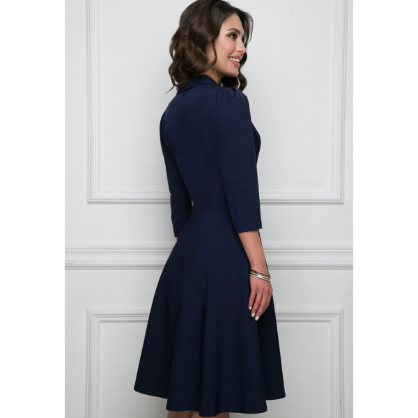 Лоретта - силуэтное платье, с широким поясом и юбкой полусолнцем, создает восхитительный силуэт «песочных часов». Отложной воротничок в сочетании с запахом на груди элегантно подчеркивает грудь. Рукав выполнен в форме небольшого фонарика длинной 3/4 и книзу заужен. Будьте неотразимы вместе с "5trend"!
