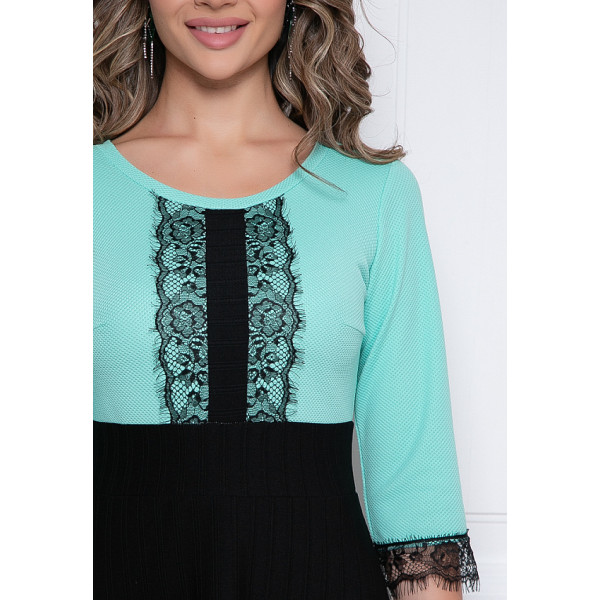 «Моника» — приталенное платье классического кроя: однотонная юбка и контрастный верх, украшенный изящным кружевным узором. Слегка завышенная талия, вертикальная планка сделает вас визуально стройнее. Рукава 3/4, оторочены манжетами. Будьте лучшей вместе с «5trend»!