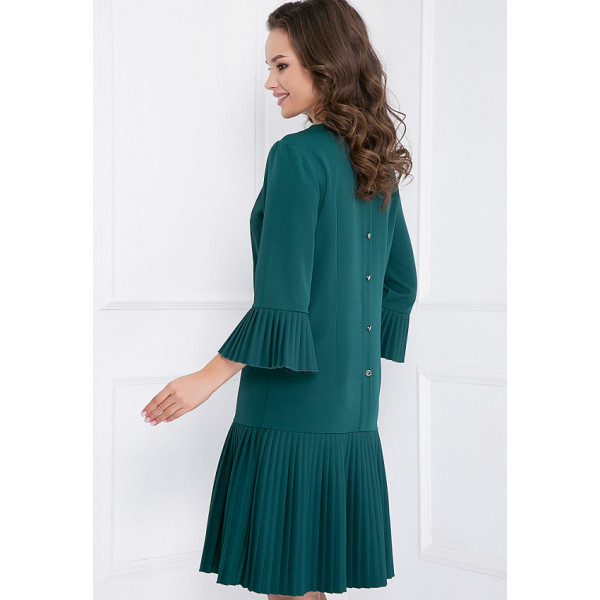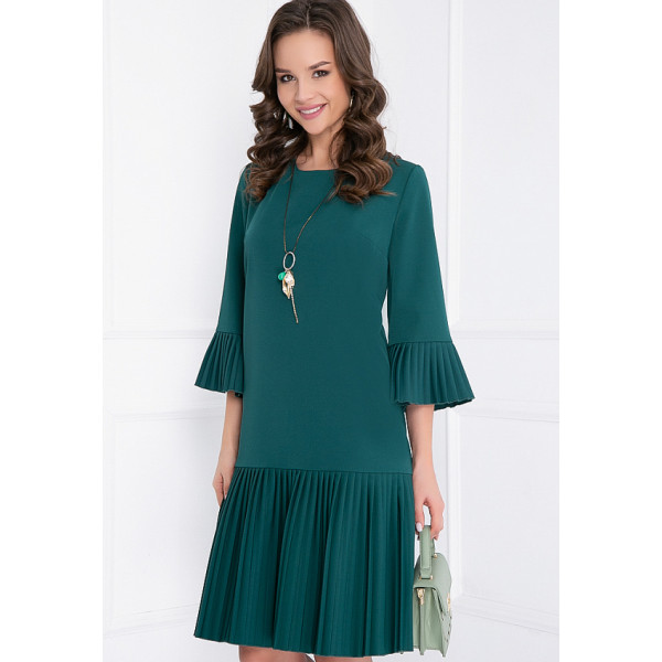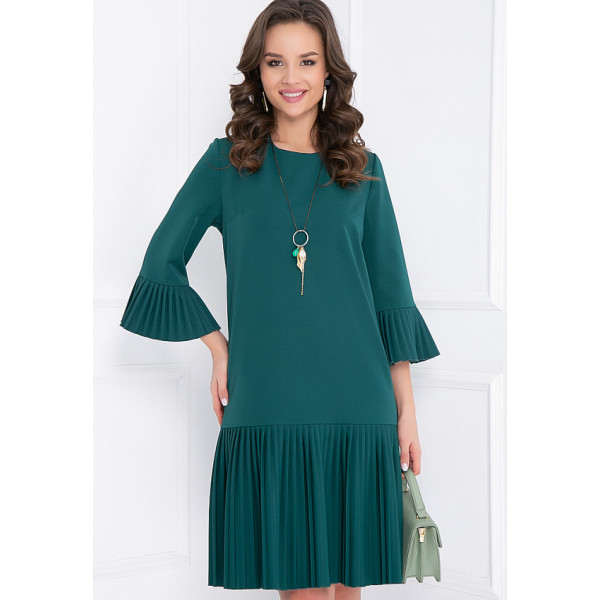 Николетта – платье прямого силуэта из плательной ткани “пикачу”. Вырез горловины – круглый. Рукава 3/4, втачные, оторочены широкими воланами с плиссировкой. По спине имитация застёжки с декоративными пуговицами. Также платье украшено воланом на юбке из плиссировки. Платье подходит, как для работы в офисе, так и для праздничной обстановки (если дополнить декоративной брошью). Удивляйте и привлекайте внимание окружающих вместе с «5trend»!