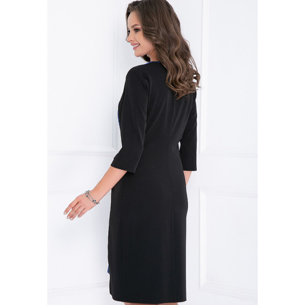 Райзела – платье прямого силуэта из костюмной ткани. Комбинировано декоративной вставкой по переду. Изюминкой данной модели является декоративный пояс который создает идеальный силуэт и делает вашу фигуру стройнее. Рукав 3/4 прямой, втачной. Ворот круглый. Платье имеет разную длину сзади и спереди. Будьте стильной и неподражаемой вместе с “5trend”!
