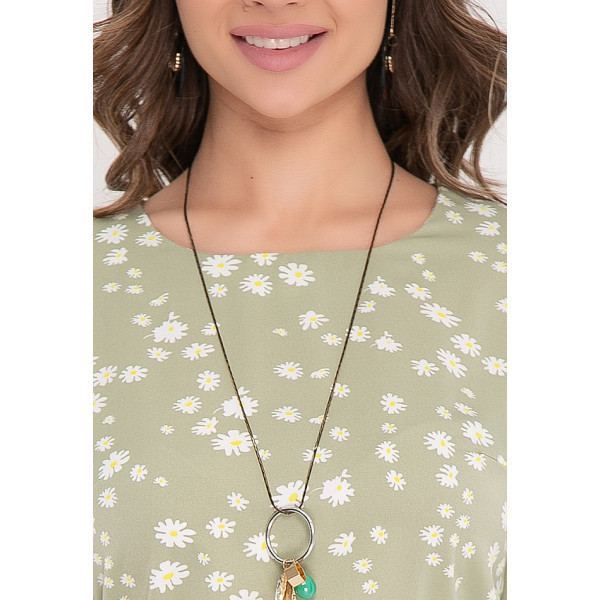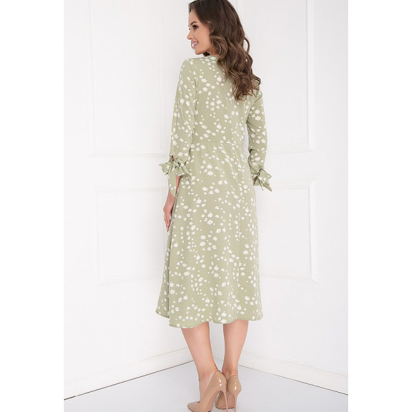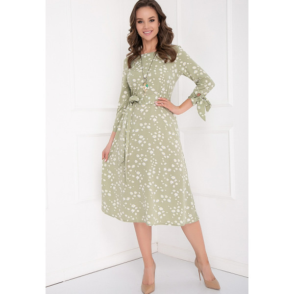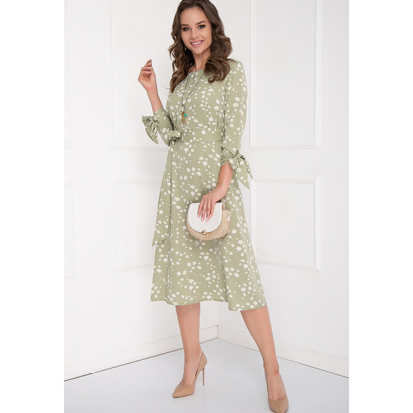 Релония - легкое платье полуприлегающего силуэта из плательной ткани с принтом. Вырез горловины классический овальный. Рукава 3/4, втачные, декорированы завязкой-бантом. Юбка отрезная, полусолнце. В боковых швах карманы. В комплект входит пояс. Удивляйте и поражайте окружающих вместе с "5trend"!