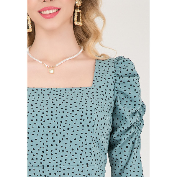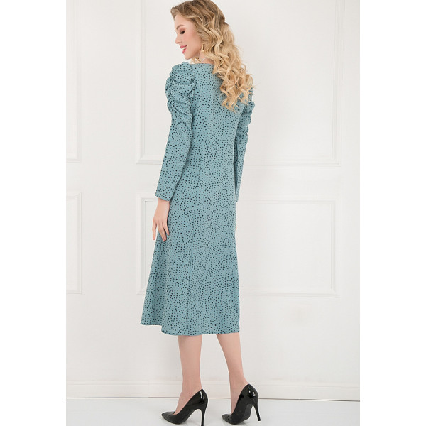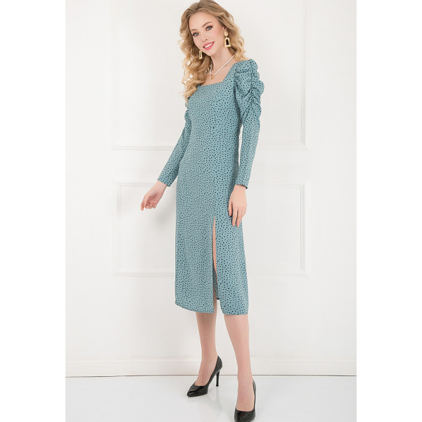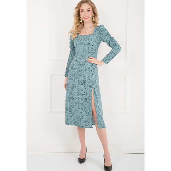Винколи - платье-миди полуприлегающего силуэта из плательной ткани с принтов. Вырез горловины - фигурный. Рукава длинные, втачные, с декоративными сборками на плечах, придающими объем и нарядность образу. Юбка - отрезная по линии талии, снизу спереди декорирована вырезом. В пройме - потайной замок. Удивляйте и привлекайте внимание окружающих вместе с "5trend"!