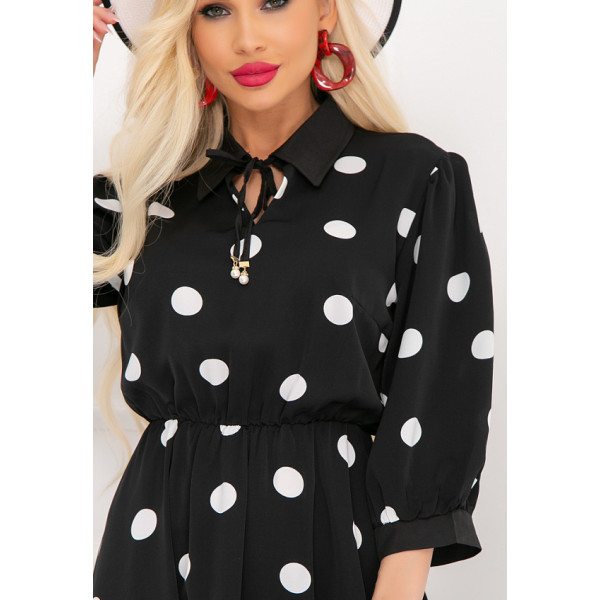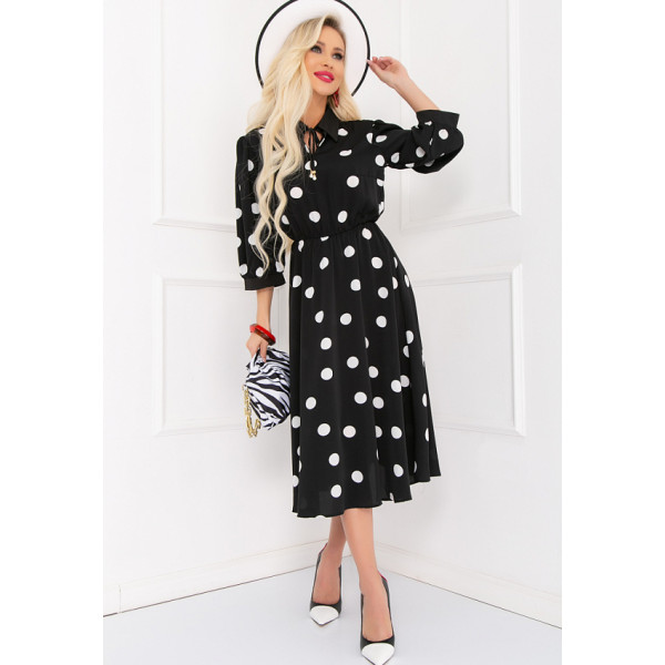 Ариано – платье свободного силуэта из легкой плательной ткани с принтом. Вырез горловины декорирован отложным воротничком на завязках. Рукава 3/4, втачные, оторочены манжетами. Юбка отрезная по линии талии, оснащена резинкой. Пояс в комплект не входит, но его можно заказать отдельно. Будьте элегантной и яркой вместе с “5trend”!