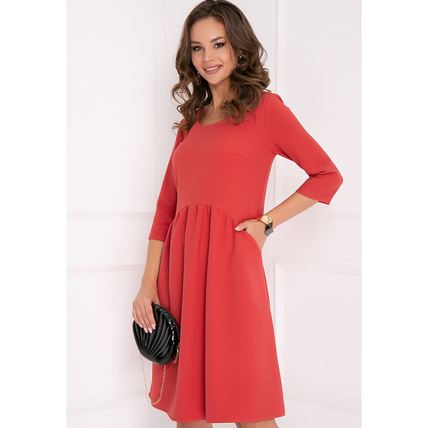 Арнеста – платье свободного силуэта из плательной ткани. По талии декоративный подрез с боковыми карманами. Вырез горловины классический круглый, рукав втачной 3/4. Быть стильной и привлекательной легко вместе с “5trend”!