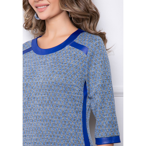 Филау - платье полуприлегающего силуэта из трикотажа и декоративных однотонных вставок. Вырез горловины классический овальный, оторочен по краям кантом. Рукава 3/4, втачные, оторочены манжетами. По бокам от рукавов к юбке - лампасы. На спинке - потайной замок-"молния". Будьте практичной и привлекательной вместе с "5trend"! Рост модели: 175 Длина изделия: 46 размер — 98,5 см 48 размер — 100 см 50 размер — 101 см 52 размер — 102 см 54 размер — 103 см 56 размер — 104,5 см