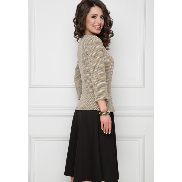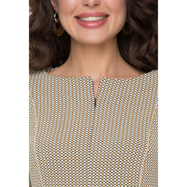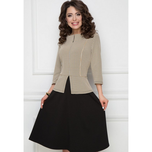 Флавия – элегантное платье с имитацией жакета. Благодаря контрасту: светлый – верх, темный – низ, отлично скрываются недостатки фигуры. Баска визуально создает силуэт “песочные часы”. Кант в рельефе стройнит. А потайная “молния” спереди по середине сделает ваш образ многогранным, так как позволяет с легкостью менять вырез ворота. Будьте загадочной и сексуальной вместе с “5trend”! Длинна платья: 46 размер — 100 см 48 размер — 101 см 50 размер — 102 см 52 размер — 104 см 54 размер — 105 см 56 размер — 106 см 58 размер — 107 см