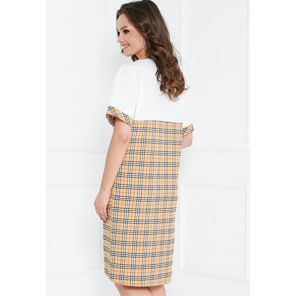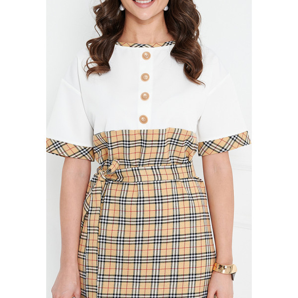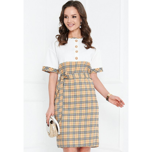 Фольяно – легкое платье прямого силуэта из плательной ткани с принтом. Вырез горловины классический овальный, декорирован обтачкой контрастного оттенка. Рукава цельнокроеные, декорированы широкими манжетами. Спереди на кокетке – декоративные пуговицы. В комплекте с платьем поставляется декоративный пояс. Привлекайте внимание и чувствуйте себя настоящей королевой вместе с “5trend”! Рост модели: 172 см Длина изделия: 44 размер — 101 см 46 размер — 102 см 48 размер — 102 см 50 размер — 103 см 52 размер — 104 см 54 размер — 105 см