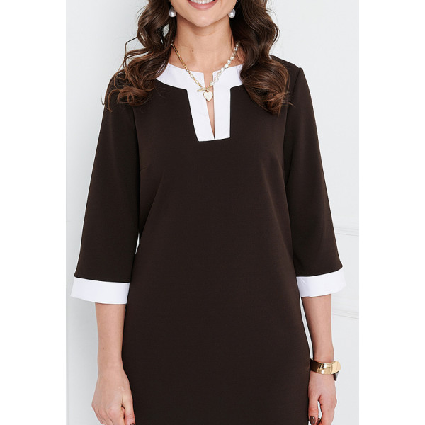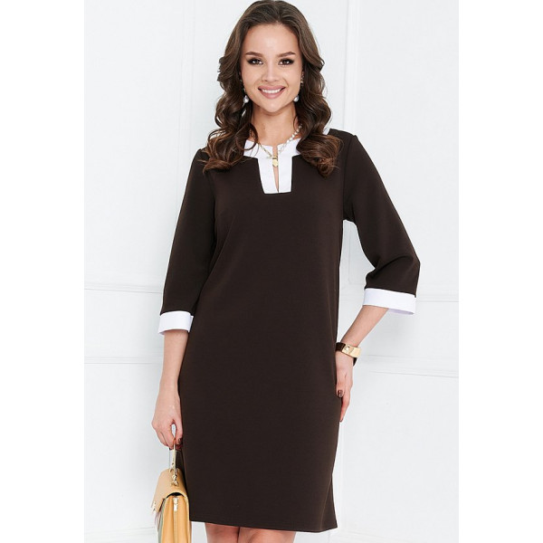 Фьюзоли - стильное платье А-силуэта из трикотажа "скреп-куба". Вырез горловины V-образный, декорирован обтачкой из ткани контрастного оттенка. Рукава втачные, 3/4. Низ рукавов обработан манжетами контрастного цвета. На груди - вытачки. Будьте неподражаемой вместе с "5trend"! Рост модели – 172 см Длина изделия: 46 размер — 92 см 48 размер — 97 см 50 размер — 100 см 52 размер — 101 см 54 размер — 102 см
