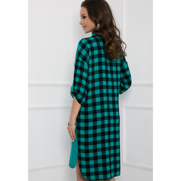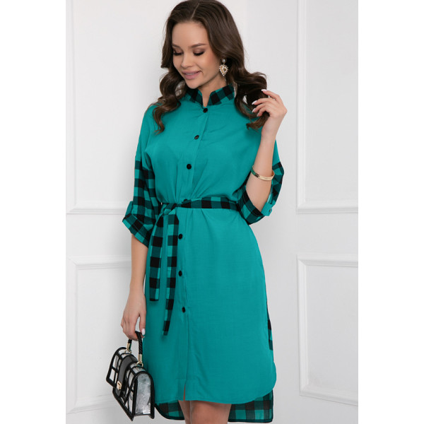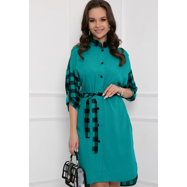 Инселка - платье-рубашка прямого силуэта из плательной ткани. Вырез горловины классический, декорирован воротником-стойкой. Рукава 3/4, втачные, со спущенной линией плеча и патами на пуговицах. Спереди по всей длине планка с функциональными пуговицами. По бокам - разрезы. Перед короче спинки. В комплекте с платьем поставляется декоративный пояс. Будьте яркой и неповторимой вместе с "5trend"!