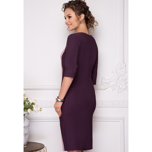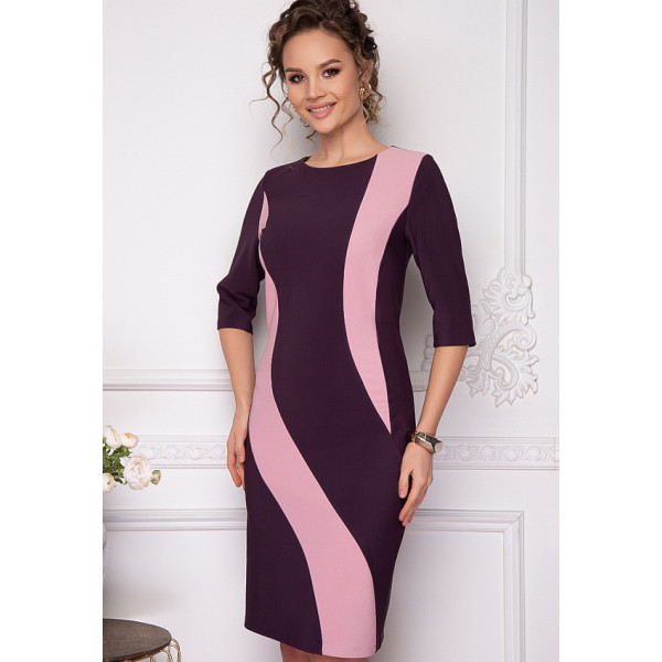 Кардео - трикотажное платье полуприлегающего силуэта из ткани контрастных оттенков. Вырез горловины классический овальный. Рукава втачные, 3/4. Спереди - декоративные вставки. На спинке - замок-"молния". Быть яркой легко вместе с "5trend"!