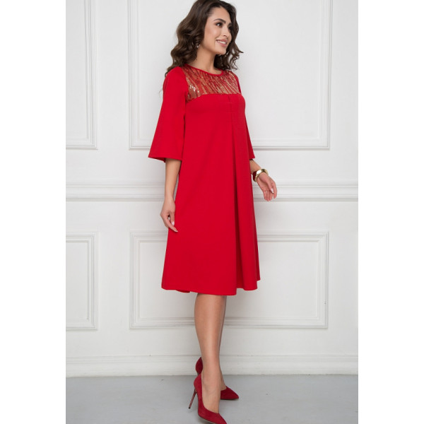 "Катарина" - классика, которая всегда удивляет и привлекает внимание! Платье “Катарина” специально для вас – это А-силуэтное платье из трикотажа яркого красного оттенка с изящной вставкой из пайеток. Рукава широкие 3/4. Изящный защип на груди придаст вам загадочность. Будьте стильной и сексуальной вместе с “5trend”! Длина изделия: 44 размер — 110 см 46 размер — 111 см 48 размер — 112 см 50 размер — 113 см 52 размер — 114 см 54 размер — 115 см 56 размер — 116 см