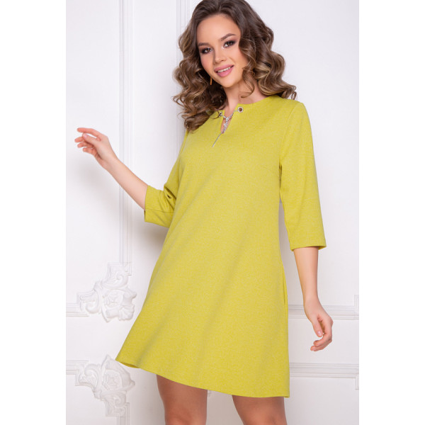 Колпано - платье А-образного силуэта с оригинальным вырезом, декорированным люверсами со стразами и цепочкой. В боковых швах карманы. Быть неотразимой легко месте с “5trend”!