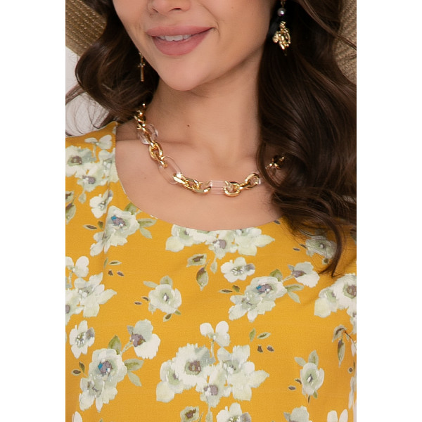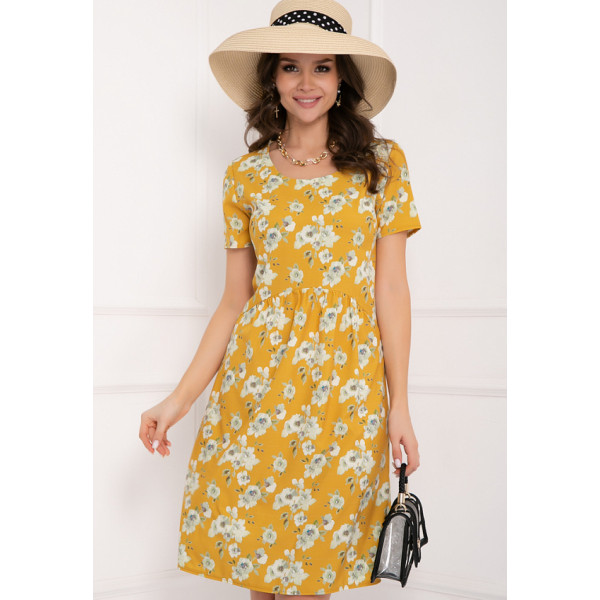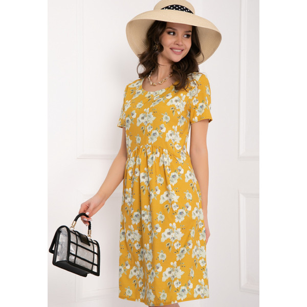 Лагарини – платье полуприлегающего силуэта из плательной ткани с принтом. Вырез горловины классический овальный, обработан обтачкой. Рукава короткие, втачные. Спереди – подрез, с декоративными сборки, которые визуально стройнят фигуру. Будьте яркой и неподражаемой вместе с “5trend”!