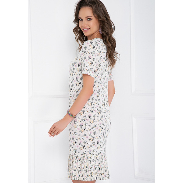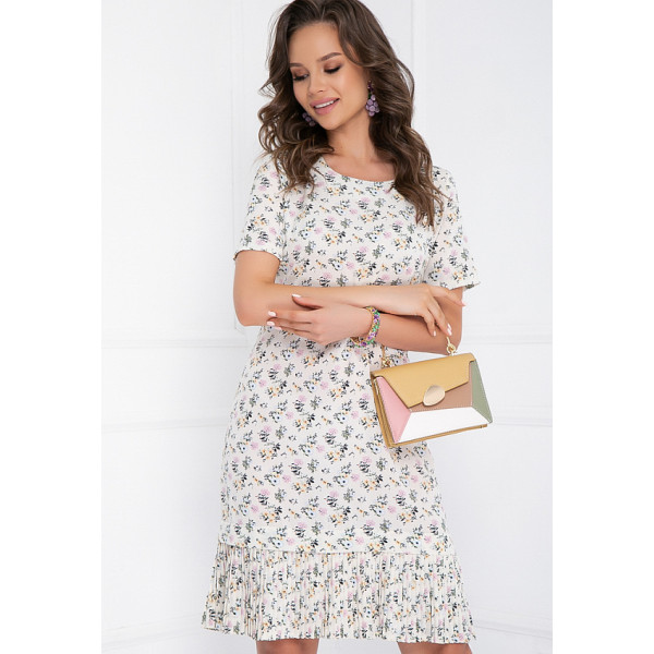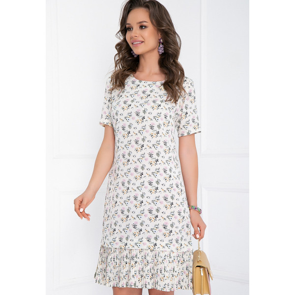 Ламенте – А-силуэтное платье из плательной ткани с принтом. Овальный вырез горловины. Рукава короткие, втачные. Юбка по низу декорирована воланом с плиссировкой. Будьте стильной и яркой вместе с “5trend”!