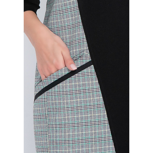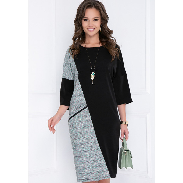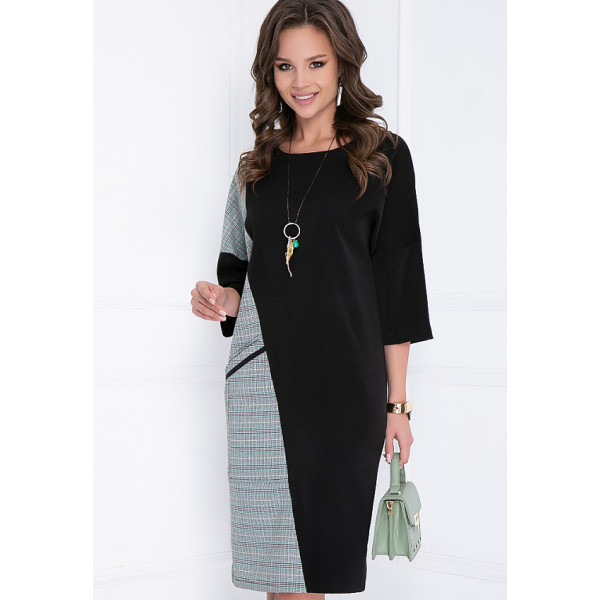 Латизана - стильное платье прямого силуэта из костюмной ткани контрастных оттенков. Линия плеча спущена, рукава 34. По переду - карман, обработанный тесьмой в тон платья. Горловина круглая. Быть неповторимой легко вместе с "5trend"!