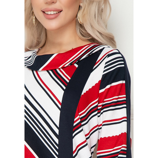 Лэлино - платье полуприлегающего силуэта из трикотажа с принтом "полоска". Вырез горловины классический овальный, оторочен широким отложным воротничком. Рукава 3/4, втачный. По переду и рукавам - вертикальная планка из ткани-компаньона. Будьте нарядной и привлекательной вместе с "5trend"! Рост модели – 172 см Длина изделия: 48 размер — 99 см 50 размер — 100 см 52 размер — 101 см 54 размер — 102 см