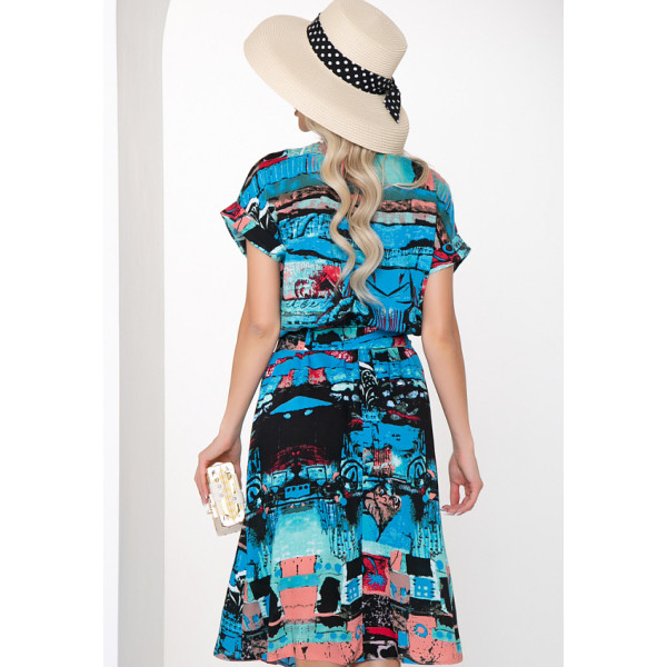 Лилиана – платье свободного кроя из штапеля с принтом. Вырез горловины классический овальный. Рукава короткие, со спущенным плечом. Юбка отрезная по линии талии, оторочена резинкой. В комплекте с платьем поставляется декоративный пояс с пряжкой. Будьте яркой и неповторимой вместе с “5trend”!